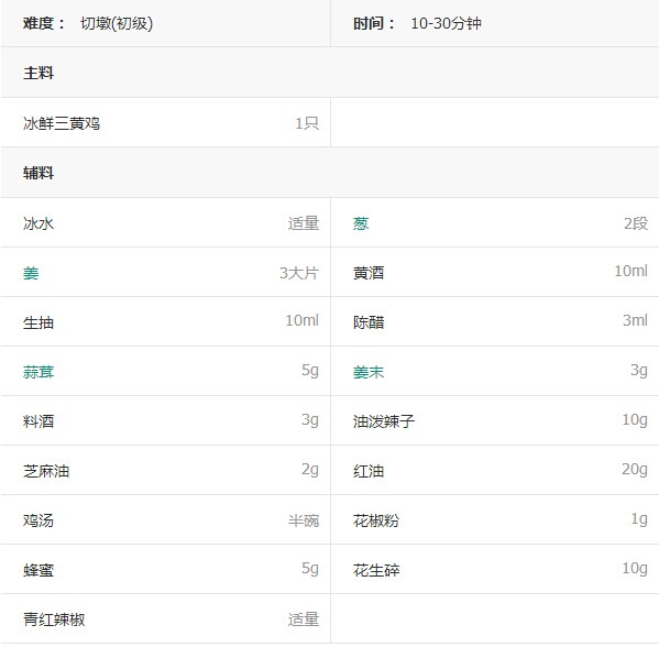 1. 冰鲜三黄鸡泡冷水1小时,中间换水2次,大号煮过加入足够量的水,水中加入葱段和姜片烧开,用手拎住鸡头,把鸡身浸入水中1分钟,捞出放到冰水里冷却3分钟