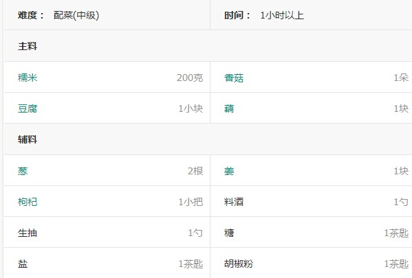 1. 糯米、香菇、莲藕、豆腐、葱姜等备料