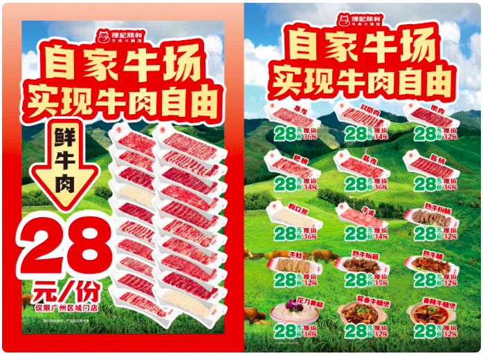 陈记顺和表示:这次调价,主要是将这两年来深耕产业链的结果,即自有牛场和供应链优势呈现出来,回馈给到顾客期待的 " 极致质价比 "。