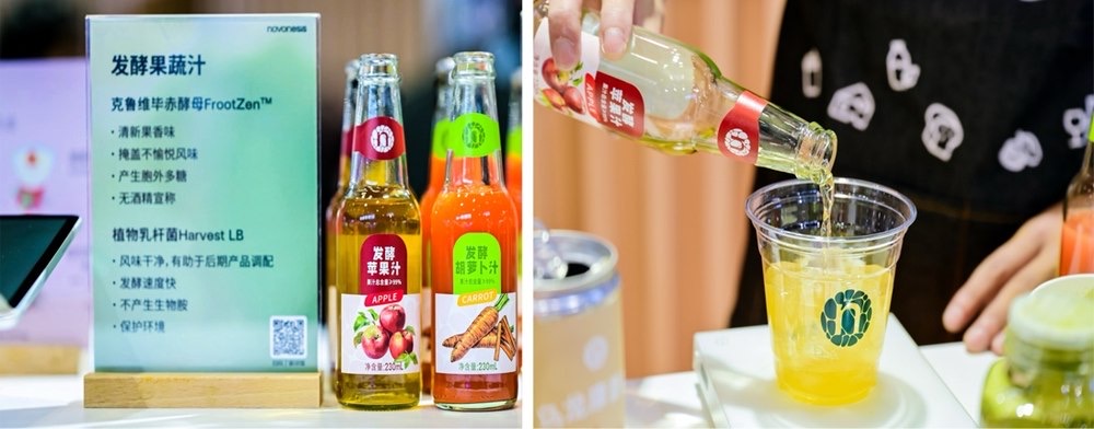 随着健康消费意识的增强,低卡、无醇饮品市场增长迅猛。根据行业数据显示,全球低卡啤酒和无醇啤酒市场近年来保持双位数增长,中国市场亦快速崛起。诺和新元洞察到了这一发展趋势推出低卡啤酒解决方案,利用生物酶技术降解淀粉,将啤酒中残留的糖分减少70%以上的同时,仍能保持纯正风味和鲜爽口感。而在无醇啤酒领域,NEER™酵母突破传统无醇/低醇生产工艺,通过高效酯类生成,弥补无醇啤酒常见的风味不足问题,为消费者带来口感出众的无醇啤酒。此外,发酵饮料也是本届FIC展会上的备受关注的热点。诺和新元发酵饮料解决方案,通过植物乳杆菌Harvest LB和克鲁维毕赤酵母FrootZen,赋予康普茶和发酵果蔬汁丰盈独特的口感,天然绵密的气泡,日常佐餐清爽解腻,同时促进肠道健康,满足消费者对天然健康饮品的需求。