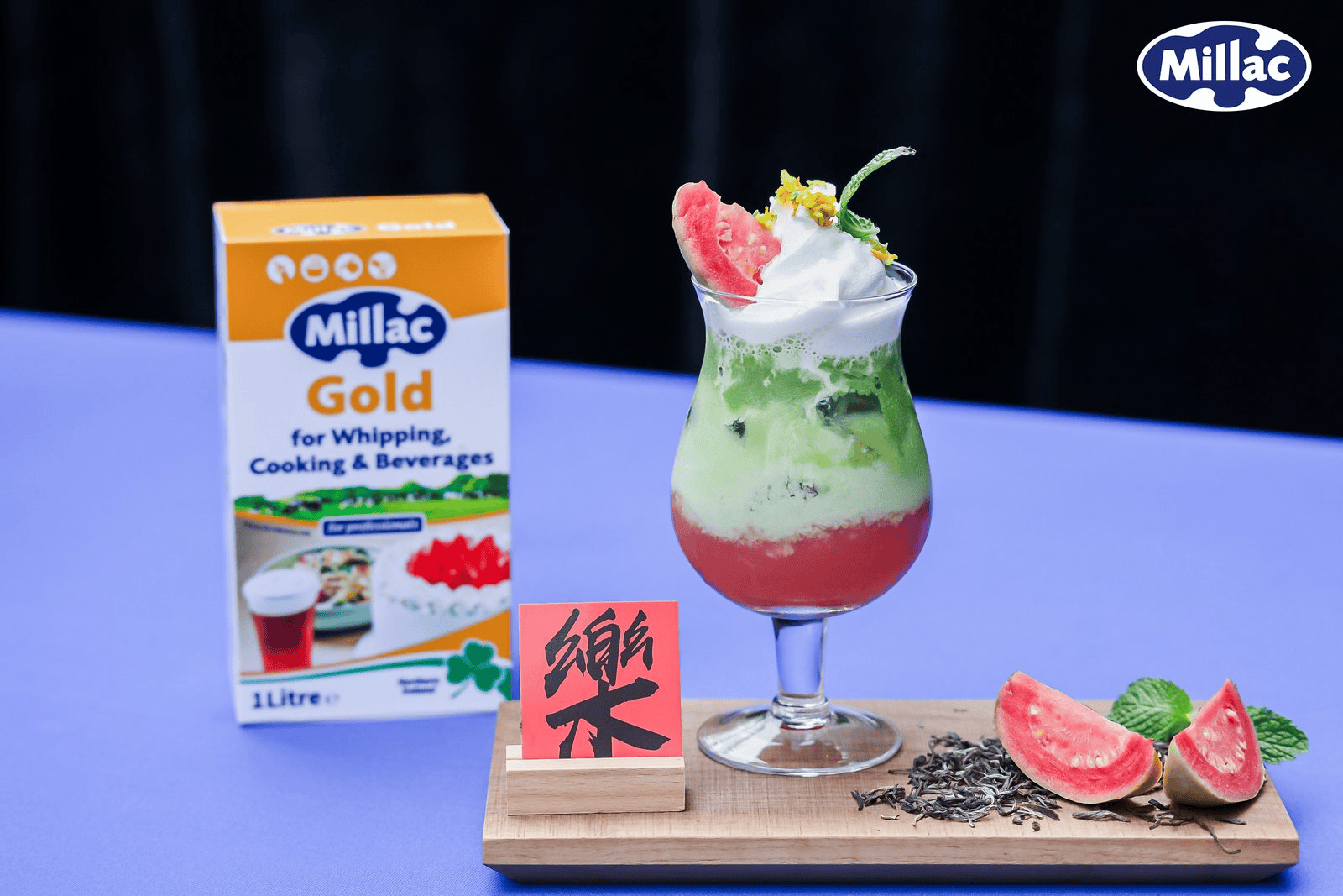 活动特别邀请Lakeland Dairies 西点技术顾问现场演示以金米勒打造的创意甜品——“龙果菠萝圣多诺”,让来宾亲身品鉴产品的打发表现、口感、质地与稳定性。紧接着,专业咖啡师展示了金米勒在创意茶饮中的运用,调制特调奶油冷饮——“开心芭乐轻云茶”,展示其易打发、口感清爽、耐酸的优越属性。金米勒富含70%北爱尔兰乳品成分,不仅口感轻爽纯净,更可广泛适配冷热应用,是名副其实的高性价比多功能奶油解决方案。