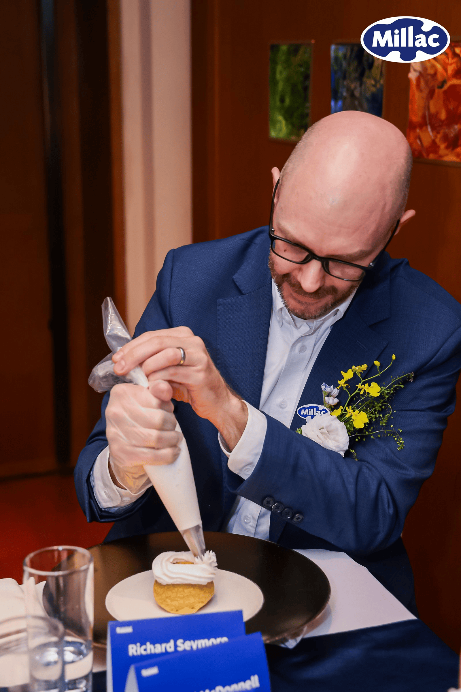 乳制品行业专家现场解读全球与中国市场的乳制品消费趋势与行业发展,帮助嘉宾更深入了解当前乳品行业的机遇与挑战。随后,知名美食博主鱼菲带领现场嘉宾亲手制作奶油泡芙,现场体验金米勒卓越的打发性与细腻质地,在轻松愉悦的互动中,进一步展现金米勒在操作便利性和适配广度上的独特优势。