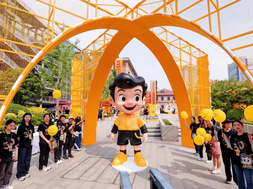 此次发布会上,周黑鸭正式启动品牌焕新升级,三大核心色“周黑鸭黄”“卤味棕”“黑鸭黑”构成视觉锚点;IP形象“小周周”以灵动的两点勾勒眼睛,原本笔直的肩膀化作柔和弧度,仿佛在热情拥抱每一位消费者;“中国卤味周黑鸭”的毛笔字也突破传统束缚,笔画间的弧度赋予整体视觉独特韵律,极具辨识度。