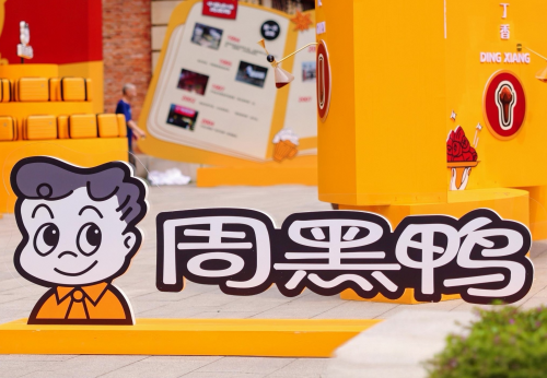 产品包装也迭代为“文创符号”,周黑鸭将“小周周”IP置于包装视觉中心,打造品牌超级符号,并融入趣味漫画插图,趣味十足;门店设计融入现代美学元素,风格时尚有趣,为消费者带来全新的购物体验......每一处细节都彰显着周黑鸭向“年轻化”转型的决心。