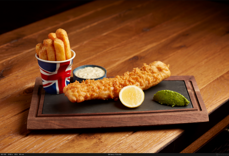 英式美食酒吧戈登拉姆齐英式酒吧则主打经典菜肴,包括新喀里多尼亚鸡尾酒虾配黄瓜及柠檬龙蒿蛋黄酱,和招牌炸鱼薯条——选用爱尔啤酒炸浆、线捕黑线鳕鱼、三炸薯条,搭配豌豆泥及塔塔酱。