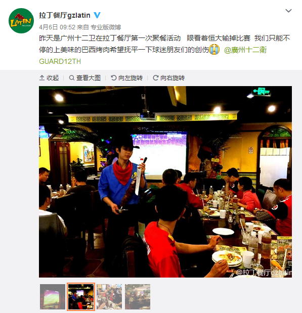 广州拉丁餐厅通过迂回策略,采取与广州恒大球迷协会合作的方式借势足球营销。