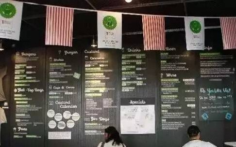 Shake Shack不管从餐厅氛围和产品印象上都属于“高大上”的范畴。创始人请来了全球顶级设计师 Paula Scher设计装潢和图标。绿色和白色营造出休闲清新的氛围,将近60%的露天座位、远远看去就是一家高端餐厅,谁也不会想到这是一家快餐店。