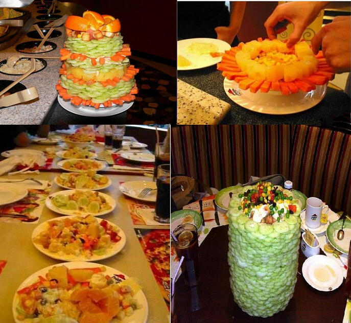 但是,在“案件”中最引人瞩目的不是吃货们横扫必胜客的消息,而是必胜客自助沙拉“建筑工程师”的出现。在必胜客官方公布取消自助沙拉这一消息后,随之在各大网络平台“炸开”是一众奇葩网友开脑洞的“搭塔秀”。