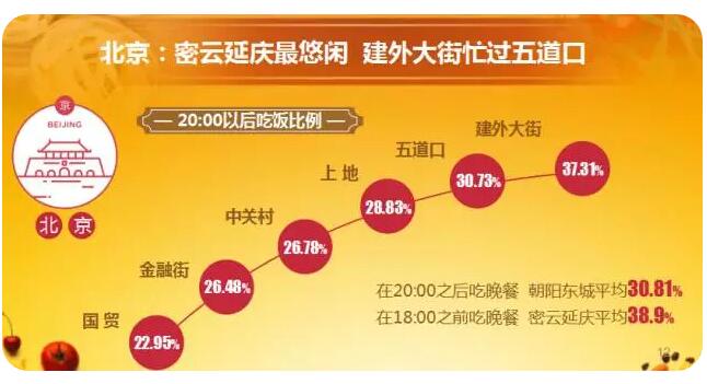 其中,帝都有31.79%的消费者晚饭时间在20:00之后。