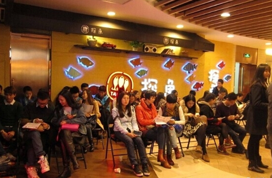我们在上文中提到,快时尚餐厅常以低价菜品吸引客流,客流量越大越能保证餐厅的收益。然而,餐厅空间的容纳量毕竟有限,因此我们常常会看到快时尚餐厅的门口大排长龙。为了避免等位顾客的流失,餐厅对等位区的“整形”也相当重视,除了提供免费茶点等,几乎每家快时尚餐厅都会引进等号软件系统,缩短顾客在店前等待的空白时间,提升服务满意度。