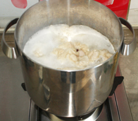 8、将炒过的糖连油一起倒入高压锅中。
