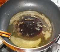 7、炒锅中倒入适量油,油量比平时炒菜时略多些。待油温高后放入白糖,炒至糖完全融化。