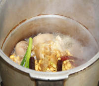 11、盖上锅盖,扣上响阀。待响阀响后转中火,焖约15分钟,关火。静置约5分钟,打开锅盖。