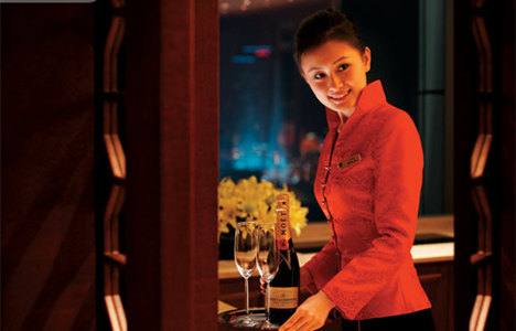 1、代客存酒服务会有两个效果:A:客人喝不完的名酒,丢之可惜,拿又显寒酸,不如存放在餐厅内,而挂上牌子的那瓶酒仿佛是一诱饵,最终又会吸引客人前来消费。B:可以满足客人企望获得尊重的心理需求。若在藏酒橱前走一走,看到橱中其中的一瓶酒赫然挂着自己的名字,这是何等的荣耀。2、提供宴请宾客的席位卡,并在餐厅的醒目位置标记公司的名称或指示牌。3、提供客人婚宴、寿宴的“喜或寿”字,播放“婚礼曲、生日歌”,让客人有一种喜悦欢庆的感觉。4、设置专用餐具、酒杯,以此栓住客人的心。